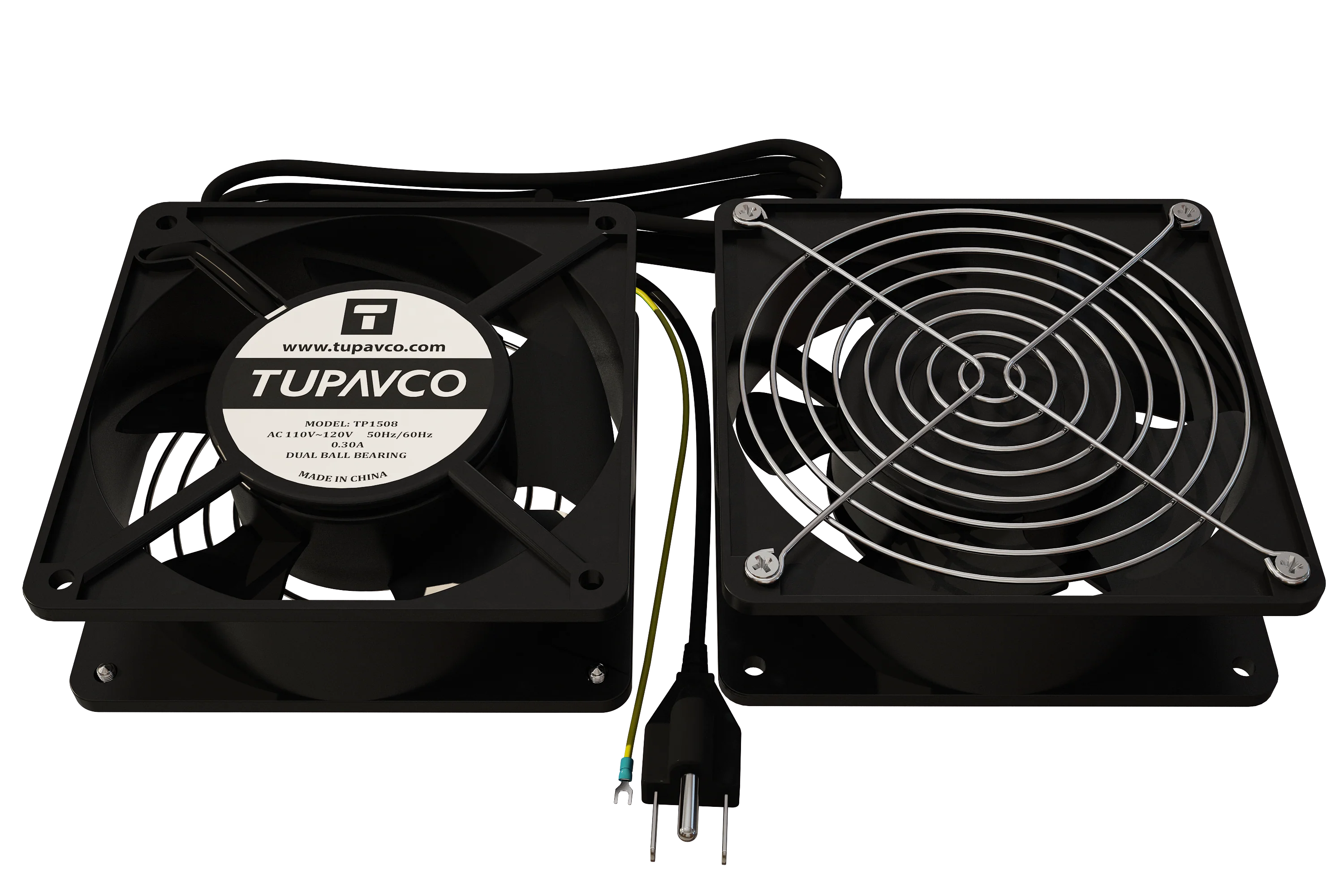 Network Cabinet Fan - Tupavco TP1508 set of 2 horizontal or vertical mount (dual ball bearing) fans provides an efficient solution to keep your network cabinet, entertainment center, or audio-video setup cool even under full load. With its specially designed blades, dual fan kit provides ventilation with maximum airflow (rated 95-110 CFM), protecting all your components from overheating. Server rack fans operate on 110V~120V AC with rated speed 2600-3000RPM and it generates noise as low as 59dBA.