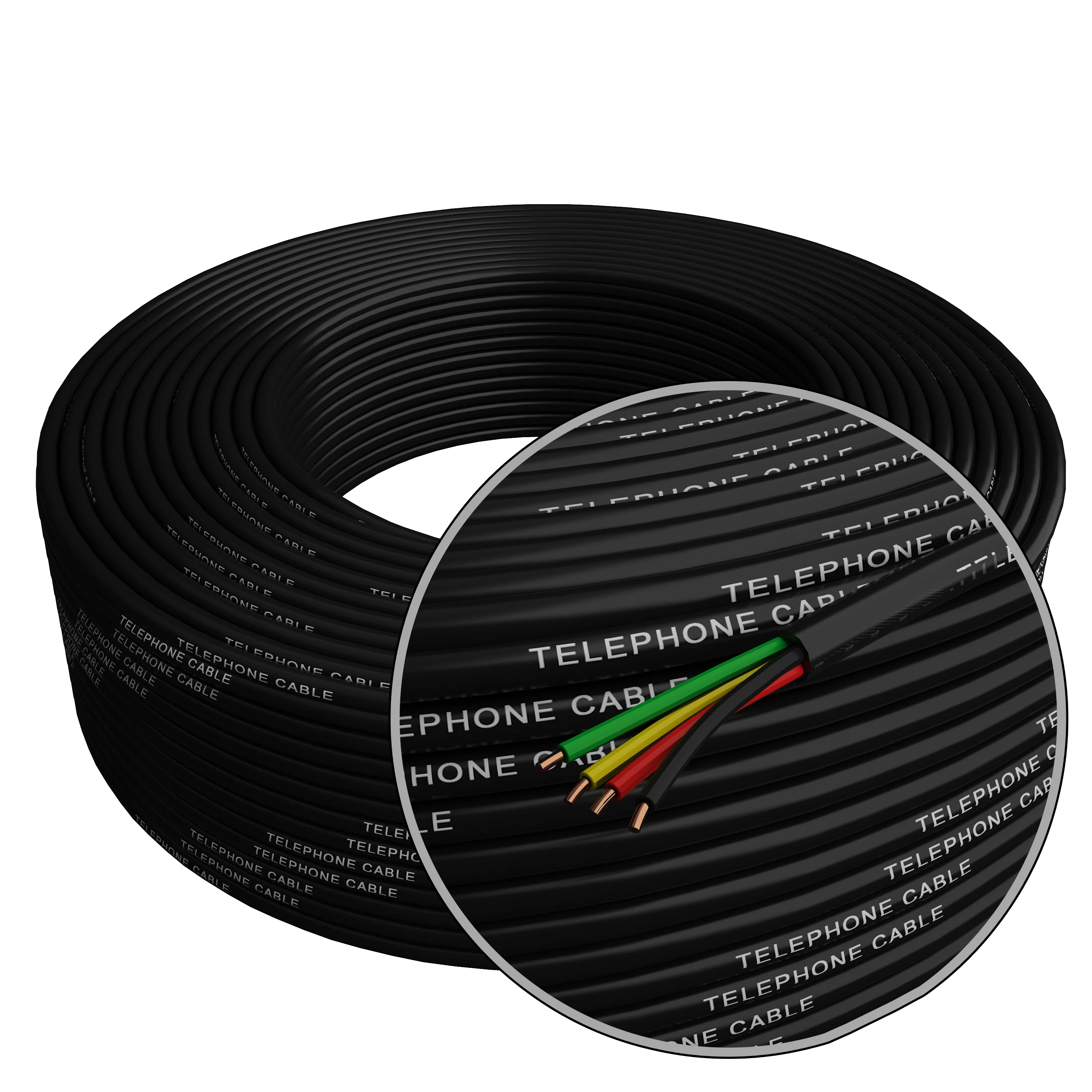 Phone Cable 300ft Rounded Black Roll (100 M - 328 ft) 4X1/0.4 Reel Round Telephone Long Cord